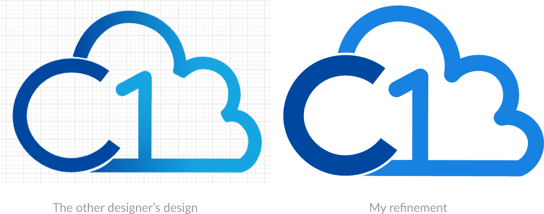 During our next meeting, the designer I collaborated with presented the design on the left for Cirrus1. After discussing it further, I took the opportunity to refine the design by increasing the stroke on the 'C' to enhance its distinction.